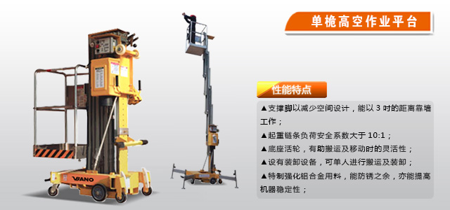 當(dāng)前位置: 首頁 > 產(chǎn)品展示 > 高空作業(yè)平臺(tái) Aerial work truck > 桅柱式高空作業(yè)平臺(tái)