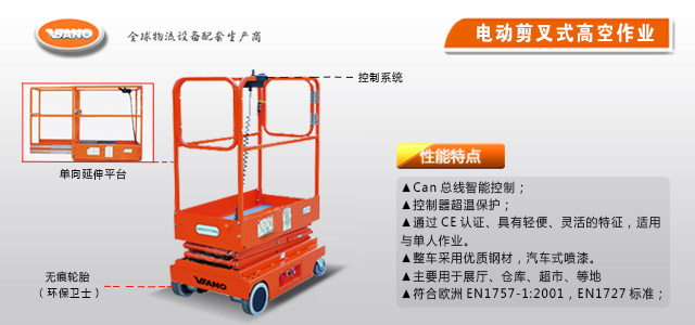堆高設(shè)備 Lift equipment | 全電動堆高車 | 半電動堆高車 | 手動堆高車 | 高空作業(yè)平臺 Aerial work truck | 剪叉式高空作業(yè)平臺 | 曲臂式高空作業(yè)平臺 | 桅柱式高空作業(yè)平臺 | 電動高空取料機 | 代理品牌 | 直臂式高空作業(yè)平臺 | 搬運設(shè)備 Handling equipment | 全電動搬運車 | 手動搬運車 | 半電動搬運車 | 剪叉搬運車 | 電動牽引車 | 油桶搬運夾 | 油桶搬運車 | 平板手推車 | 體感搬運車 | 電動平車 | 升降平臺 Lifting platform | 電動升降平臺 | 電動平臺車 | 手動平臺車 | 剛性鏈升降平臺 | 電動叉車 Electric forklift | 電動叉車 | 叉車配件 | 德系品牌叉車 | 環(huán)保設(shè)備Environmental equipment | 電動觀光車 | 電動巡邏車 | 電動老爺車 | 電動貨車 | 救護(hù)車 | 清潔設(shè)備 Cleaning equipment | 掃地機 | 洗地機 | 工業(yè)吸塵吸水 | 倉儲設(shè)備 Storage equipment | 工作臺 | 托盤 | 倉儲籠、物流臺車 | 零件盒 | 裝卸設(shè)備 unloading equipment | 鋼梯 | 登車橋 | 單臂吊 | 搬運器 | 龍門架 | 車間起重 | 貨梯 | 輸送設(shè)備 Delivery equipment | 汽保設(shè)備 Metal equipment | 汽車舉升機 | 非標(biāo)定制系列 | 防爆定制系列 | 防爆堆高車 | 防爆高空作業(yè)平臺 | 防爆垂直桅桿高空作業(yè)平臺 |