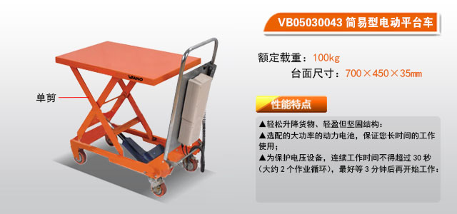 | ▲ 輕松升降貨物,輕盈但堅(jiān)固結(jié)構(gòu) ▲ 選配的大功率的動力電池,保證您長時(shí)間的工作使用 ▲ 為保護(hù)電源設(shè)備,連續(xù)工作時(shí)間不得超過30秒(大約2個(gè)作業(yè)循環(huán)),最好等3分鐘后再開始工作 |