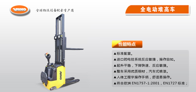 堆高設(shè)備 Lift equipment | 全電動(dòng)堆高車 | 半電動(dòng)堆高車 | 手動(dòng)堆高車 | 高空作業(yè)平臺(tái) Aerial work truck | 剪叉式高空作業(yè)平臺(tái) | 曲臂式高空作業(yè)平臺(tái) | 桅柱式高空作業(yè)平臺(tái) | 電動(dòng)高空取料機(jī) | 代理品牌 | 直臂式高空作業(yè)平臺(tái) | 搬運(yùn)設(shè)備 Handling equipment | 全電動(dòng)搬運(yùn)車 | 手動(dòng)搬運(yùn)車 | 半電動(dòng)搬運(yùn)車 | 剪叉搬運(yùn)車 | 電動(dòng)牽引車 | 油桶搬運(yùn)夾 | 油桶搬運(yùn)車 | 平板手推車 | 體感搬運(yùn)車 | 電動(dòng)平車 | 升降平臺(tái) Lifting platform | 電動(dòng)升降平臺(tái) | 電動(dòng)平臺(tái)車 | 手動(dòng)平臺(tái)車 | 剛性鏈升降平臺(tái) | 電動(dòng)叉車 Electric forklift | 電動(dòng)叉車 | 叉車配件 | 德系品牌叉車 | 環(huán)保設(shè)備Environmental equipment | 電動(dòng)觀光車 | 電動(dòng)巡邏車 | 電動(dòng)老爺車 | 電動(dòng)貨車 | 救護(hù)車 | 清潔設(shè)備 Cleaning equipment | 掃地機(jī) | 洗地機(jī) | 工業(yè)吸塵吸水 | 倉(cāng)儲(chǔ)設(shè)備 Storage equipment | 工作臺(tái) | 托盤 | 倉(cāng)儲(chǔ)籠、物流臺(tái)車 | 零件盒 | 裝卸設(shè)備 unloading equipment | 鋼梯 | 登車橋 | 單臂吊 | 搬運(yùn)器 | 龍門架 | 車間起重 | 貨梯 | 輸送設(shè)備 Delivery equipment | 汽保設(shè)備 Metal equipment | 汽車舉升機(jī) | 非標(biāo)定制系列 | 防爆定制系列 | 防爆堆高車 | 防爆高空作業(yè)平臺(tái) | 防爆垂直桅桿高空作業(yè)平臺(tái) |