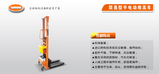 堆高設(shè)備 Lift equipment | 全電動(dòng)堆高車 | 半電動(dòng)堆高車 | 手動(dòng)堆高車 | 高空作業(yè)平臺(tái) Aerial work truck | 剪叉式高空作業(yè)平臺(tái) | 曲臂式高空作業(yè)平臺(tái) | 桅柱式高空作業(yè)平臺(tái) | 電動(dòng)高空取料機(jī) | 代理品牌 | 直臂式高空作業(yè)平臺(tái) | 搬運(yùn)設(shè)備 Handling equipment | 全電動(dòng)搬運(yùn)車 | 手動(dòng)搬運(yùn)車 | 半電動(dòng)搬運(yùn)車 | 剪叉搬運(yùn)車 | 電動(dòng)牽引車 | 油桶搬運(yùn)夾 | 油桶搬運(yùn)車 | 平板手推車 | 體感搬運(yùn)車 | 電動(dòng)平車 | 升降平臺(tái) Lifting platform | 電動(dòng)升降平臺(tái) | 電動(dòng)平臺(tái)車 | 手動(dòng)平臺(tái)車 | 剛性鏈升降平臺(tái) | 電動(dòng)叉車 Electric forklift | 電動(dòng)叉車 | 叉車配件 | 德系品牌叉車 | 環(huán)保設(shè)備Environmental equipment | 電動(dòng)觀光車 | 電動(dòng)巡邏車 | 電動(dòng)老爺車 | 電動(dòng)貨車 | 救護(hù)車 | 清潔設(shè)備 Cleaning equipment | 掃地機(jī) | 洗地機(jī) | 工業(yè)吸塵吸水 | 倉(cāng)儲(chǔ)設(shè)備 Storage equipment | 工作臺(tái) | 托盤 | 倉(cāng)儲(chǔ)籠、物流臺(tái)車 | 零件盒 | 裝卸設(shè)備 unloading equipment | 鋼梯 | 登車橋 | 單臂吊 | 搬運(yùn)器 | 龍門架 | 車間起重 | 貨梯 | 輸送設(shè)備 Delivery equipment | 汽保設(shè)備 Metal equipment | 汽車舉升機(jī) | 非標(biāo)定制系列 | 防爆定制系列 | 防爆堆高車 | 防爆高空作業(yè)平臺(tái) | 防爆垂直桅桿高空作業(yè)平臺(tái) |