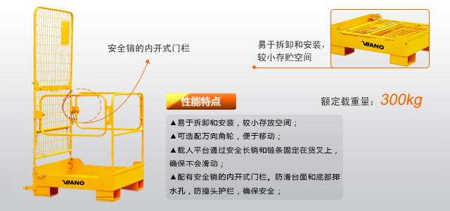 ▲ 配有安全銷的內(nèi)開式門欄,防滑臺(tái)面和底部排水孔,防撞頭護(hù)欄,確保安全 ; |