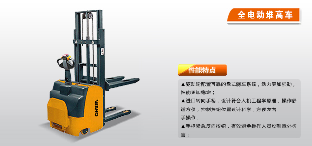 堆高設備 Lift equipment | 全電動堆高車 | 半電動堆高車 | 手動堆高車 | 高空作業(yè)平臺 Aerial work truck | 剪叉式高空作業(yè)平臺 | 曲臂式高空作業(yè)平臺 | 桅柱式高空作業(yè)平臺 | 電動高空取料機 | 代理品牌 | 直臂式高空作業(yè)平臺 | 搬運設備 Handling equipment | 全電動搬運車 | 手動搬運車 | 半電動搬運車 | 剪叉搬運車 | 電動牽引車 | 油桶搬運夾 | 油桶搬運車 | 平板手推車 | 體感搬運車 | 電動平車 | 升降平臺 Lifting platform | 電動升降平臺 | 電動平臺車 | 手動平臺車 | 剛性鏈升降平臺 | 電動叉車 Electric forklift | 電動叉車 | 叉車配件 | 德系品牌叉車 | 環(huán)保設備Environmental equipment | 電動觀光車 | 電動巡邏車 | 電動老爺車 | 電動貨車 | 救護車 | 清潔設備 Cleaning equipment | 掃地機 | 洗地機 | 工業(yè)吸塵吸水 | 倉儲設備 Storage equipment | 工作臺 | 托盤 | 倉儲籠、物流臺車 | 零件盒 | 裝卸設備 unloading equipment | 鋼梯 | 登車橋 | 單臂吊 | 搬運器 | 龍門架 | 車間起重 | 貨梯 | 輸送設備 Delivery equipment | 汽保設備 Metal equipment | 汽車舉升機 | 非標定制系列 | 防爆定制系列 | 防爆堆高車 | 防爆高空作業(yè)平臺 | 防爆垂直桅桿高空作業(yè)平臺 |