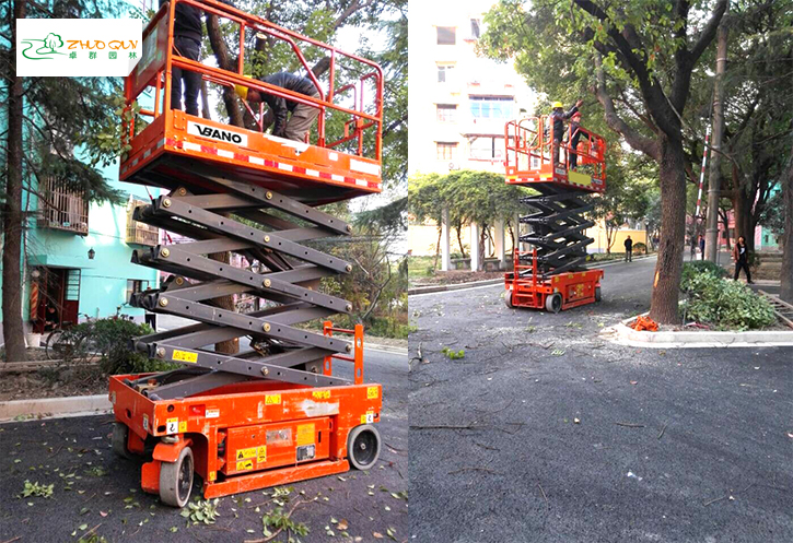 卓群園林景觀工程有限公司2014年6月份在我司購(gòu)置了2臺(tái)全電動(dòng)剪叉式升降平臺(tái),用于戶(hù)外園林樹(shù)木及花卉的修剪和保養(yǎng)。