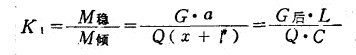 當叉車在水平路面上,門架處于垂直狀態(tài),貨又在最低位里,并載有頰定貨重。這時穩(wěn)定系數(shù)可用下式表示: