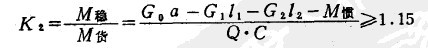 在上述計算中,只考慮了靜力作用,所以K:叫做靜穩(wěn)定系教,但在選擇一定的穩(wěn)定系數(shù)時,也可以把復(fù)雜的動力作用的影響考慮在內(nèi)。在這種情況下,靜穩(wěn)定系數(shù)與叉車的類型、起升高度以及門架約前傾角等因素有關(guān)。對于小型叉車K:可取為1.4,對于大型叉車K:可取為1.75.